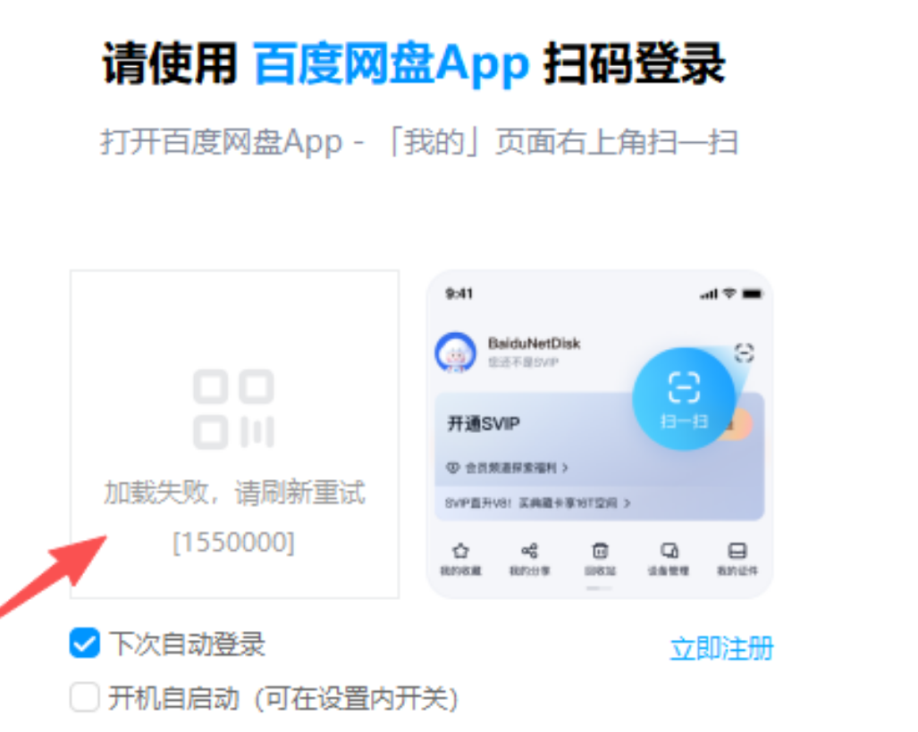作为一个百度网盘拉新转存也有收益的我,里面存了资料只有自己知道有多少,多年老会员的我前两天居然我遇到了百度网盘登录不上的问题,这怎么能够容忍呐,万一我小伙伴们也遇到过怎么办,突然登录不上,不知道你们有没有遇到过百度网盘过阻碍,老登录不上,不管你是用扫码还是手机号都是这样,主要是还一直提示出现下面出现的这样,当然还有加载不了,没有二维码等等,本人亲测可以用了,今天给大家说说这个解决办法